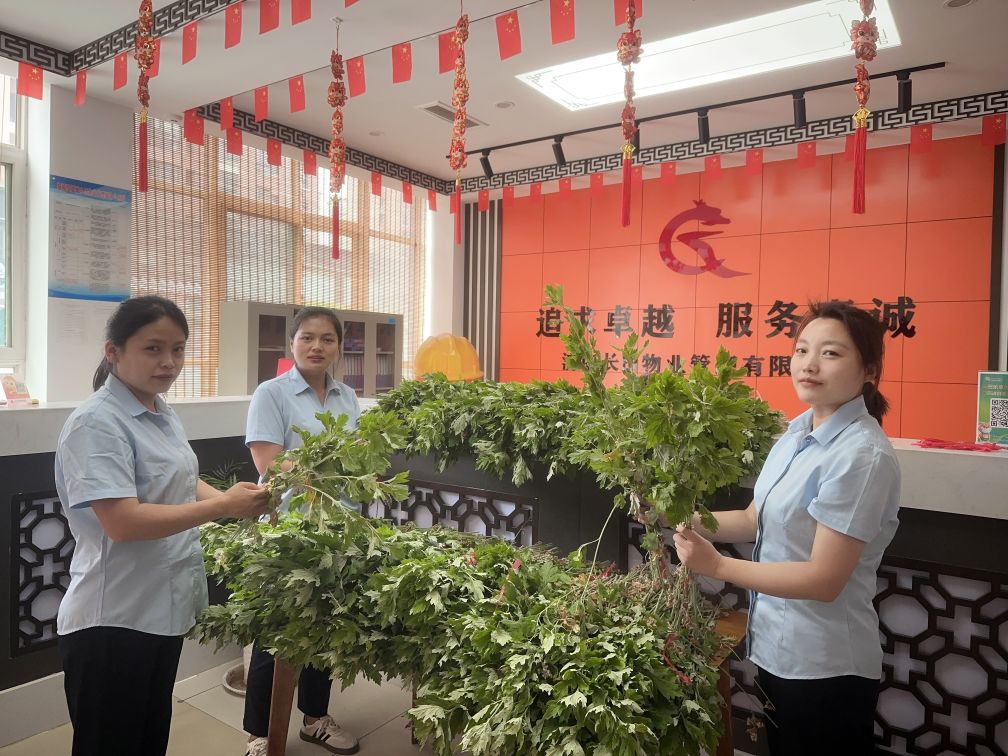 艾草,是端午節(jié)的重要象征,寓意著健康和平安。每逢端午佳節(jié),人們習(xí)慣將艾草插于門楣、懸于堂中,用以驅(qū)蟲、辟邪祈福。長田物業(yè)禧福鳳凰城項(xiàng)目部工作人員將一早精心挑選采購回來的新鮮艾草,扎成捆,免費(fèi)贈(zèng)予業(yè)主,讓業(yè)主感受來自長田物業(yè)滿滿的“艾”意。