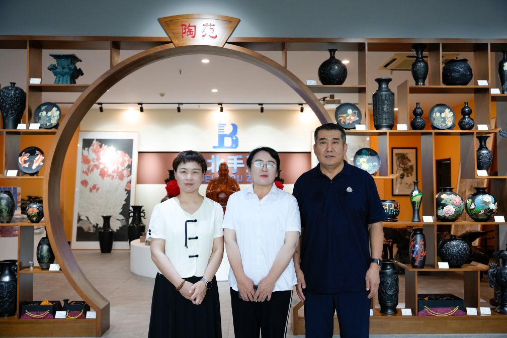 在山東手造濟北展示體驗中心,調研組被濟陽地區(qū)各種優(yōu)秀傳統(tǒng)手工技藝作品深深吸引,對濟北手造的文創(chuàng)產品及陳列布局表示了高度認可。馬局長講到,濟北手造展示體驗中心展品品類豐富,各具特色,這些手工藝品不僅技藝精湛,更蘊含了豐富的文化底蘊和時代精神,體現(xiàn)了當?shù)亟橙藗儗鹘y(tǒng)技藝的堅守與創(chuàng)新,要以堅定不移的信念傳承下去,因為只有傳承,才能真正實現(xiàn)非物質文化遺產的保護和發(fā)展,才能讓它們留下來、活起來、傳開來。她表示,非遺文化傳承關鍵在人,還要有一定的展示空間可以對外展示。張總作為民營企業(yè)家積極踐行新時代企業(yè)家精神,打造了濟北手造展示體驗中心,助力傳統(tǒng)老手藝在新時代綻放新光彩。還通過非遺文化產業(yè)助力鄉(xiāng)村振興,凝心聚力、回報社會,彰顯著新時代企業(yè)家的擔當和情懷。馬局長進一步補充道,廣河縣自然景觀資源豐富,文化底蘊深厚,發(fā)展?jié)摿Υ螅瑧獜倪M一步挖掘地域特色,鼓勵更多的本土企業(yè)家投身于非遺文化傳承,促進文化旅游產業(yè)的深度融合,將傳統(tǒng)手工藝與自然景觀相結合,打造本地特色文化屬性、加大宣傳推廣力度、拓展產品銷售渠道等方面發(fā)力,推動廣河文旅發(fā)展更上新臺階。