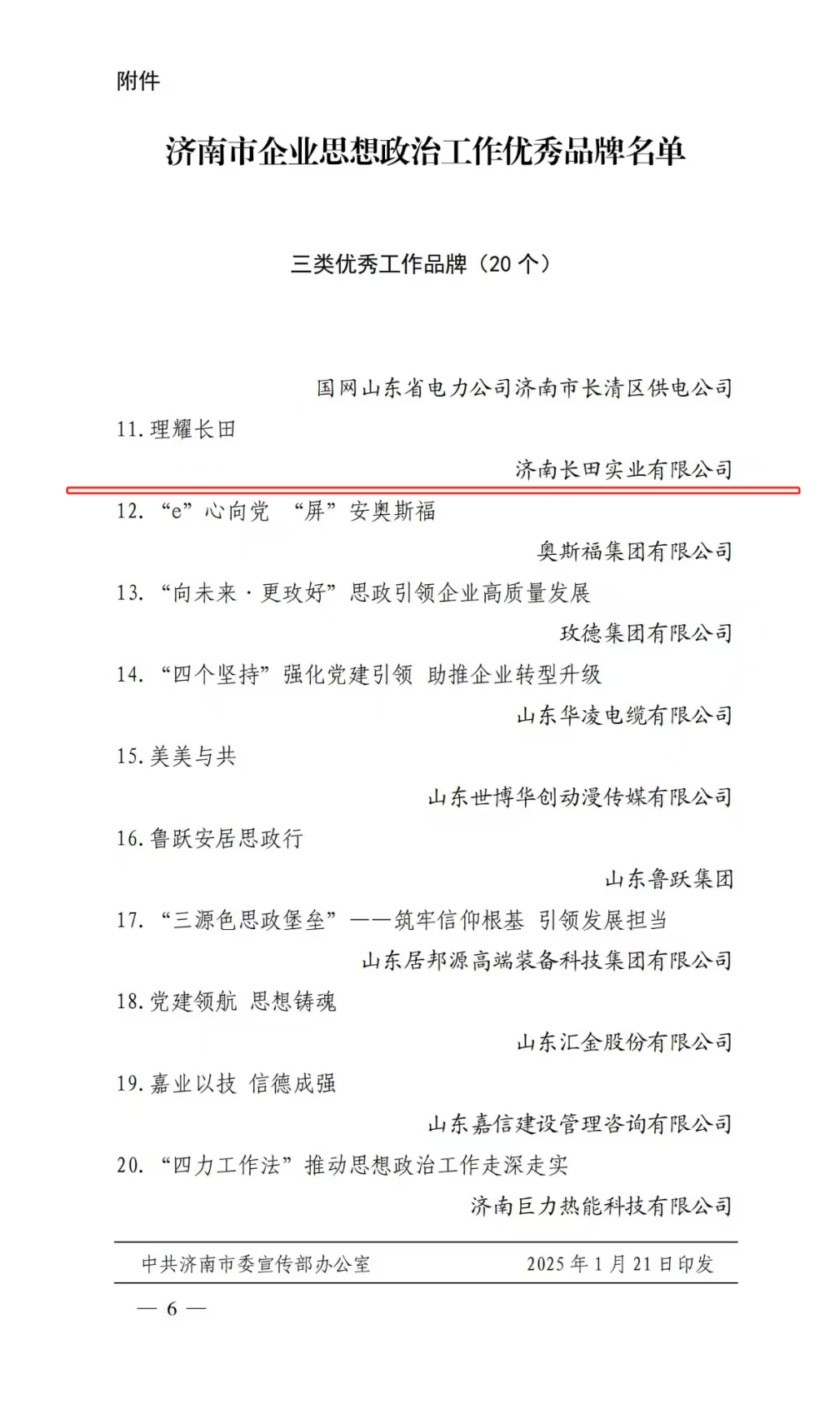 近期,市委宣傳部、市國資委、市工商聯(lián)和市政研會聯(lián)合組織開展了全市企業(yè)思想政治工作品牌選樹活動,濟南長田實業(yè)有限公司創(chuàng)建的思想政治工作品牌——“理耀長田”榮獲濟南市企業(yè)思想政治工作優(yōu)秀品牌。